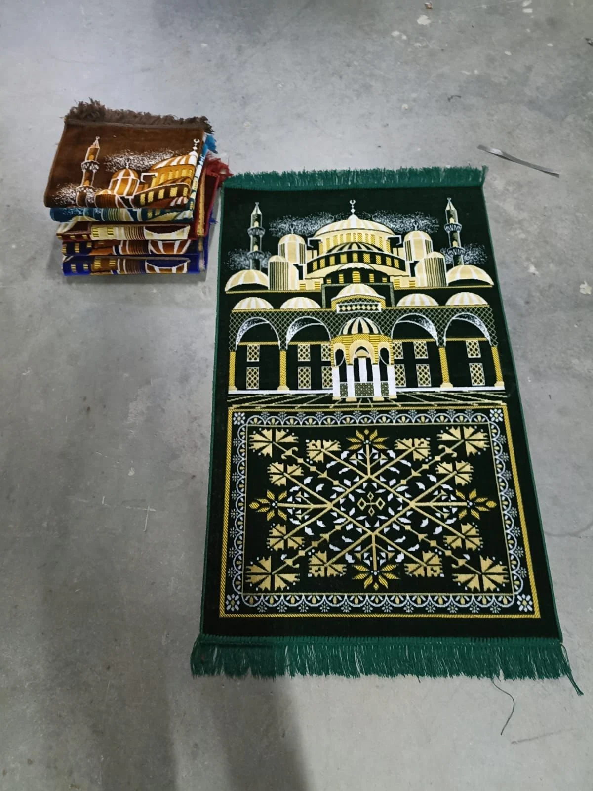 - Each prayer rug is decorated with carefully selected colors and patterns.