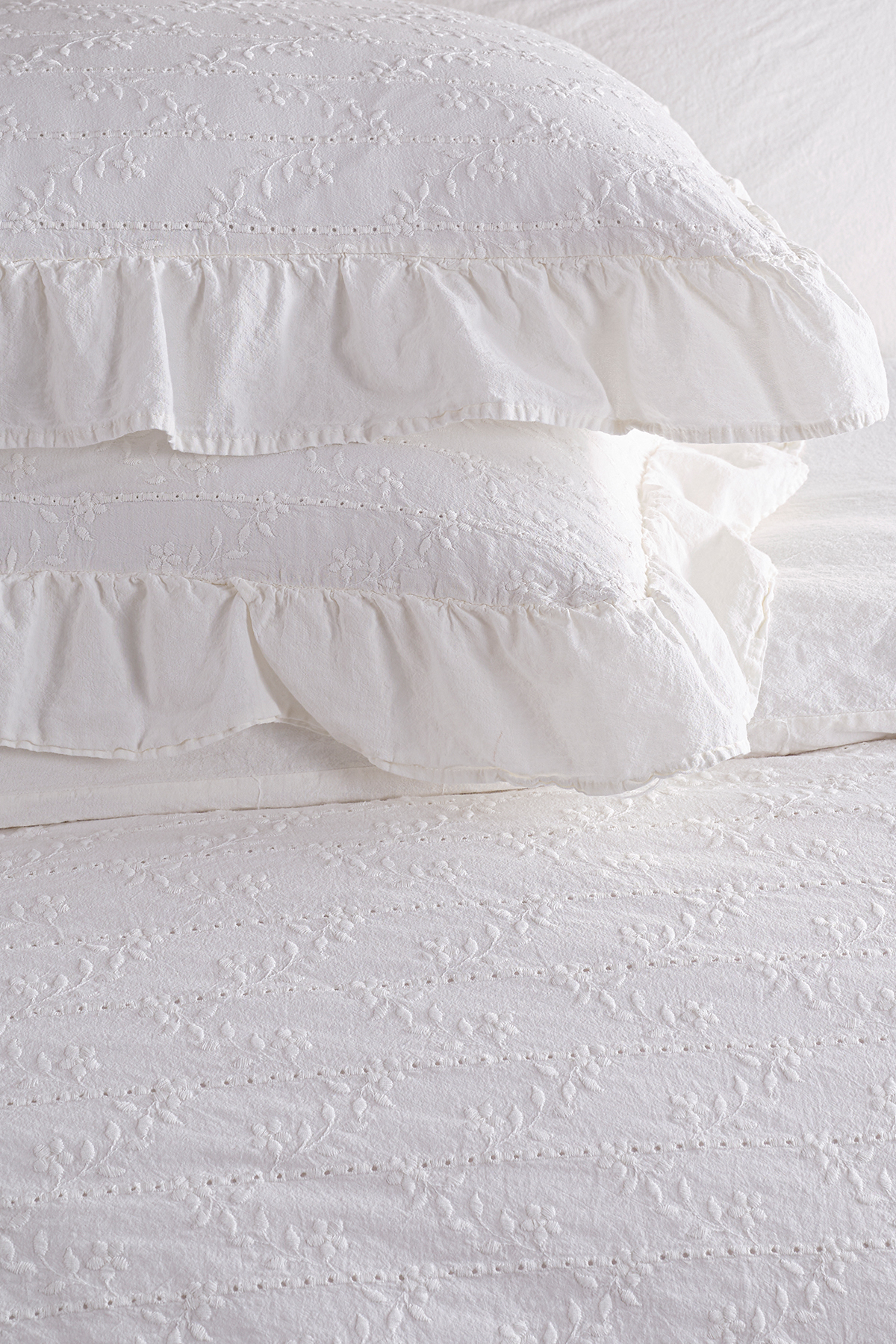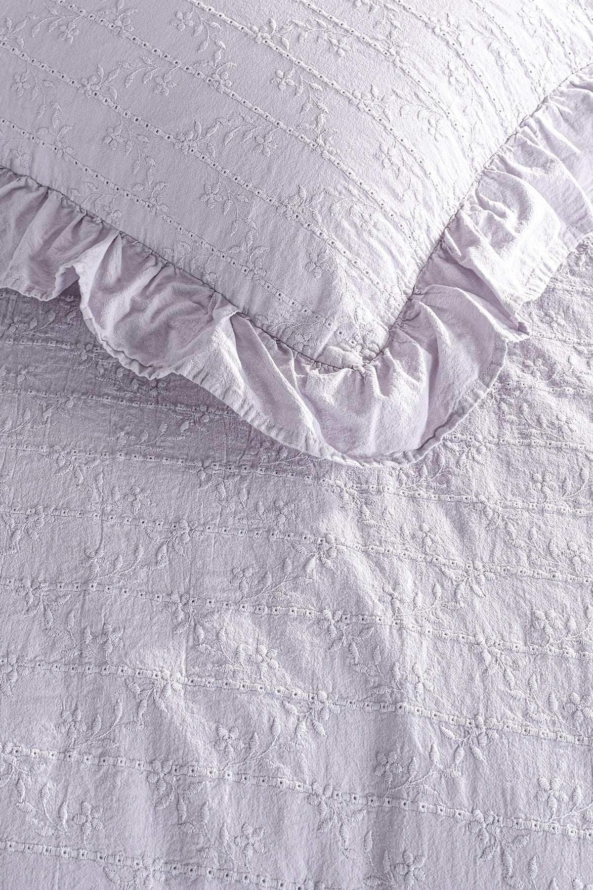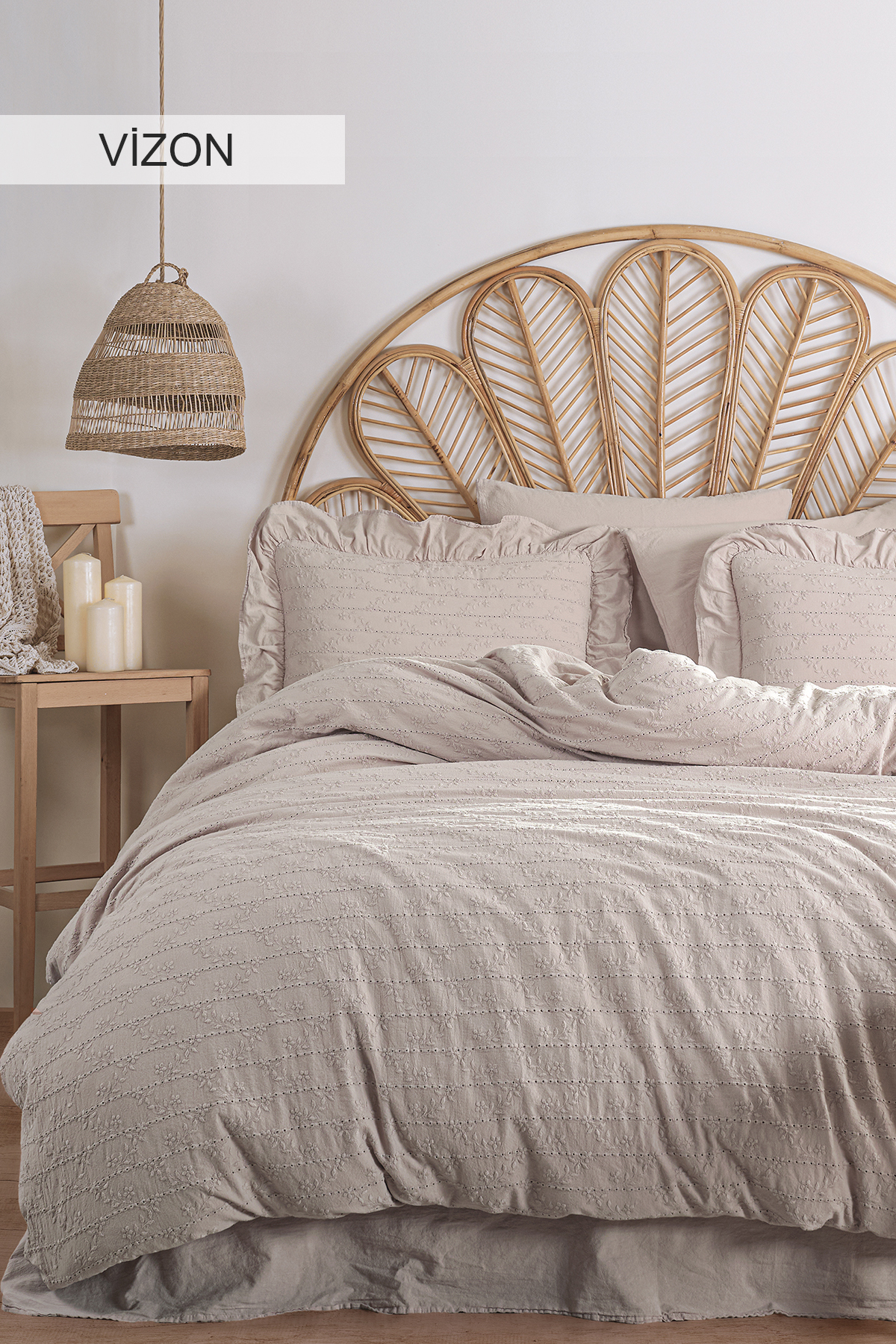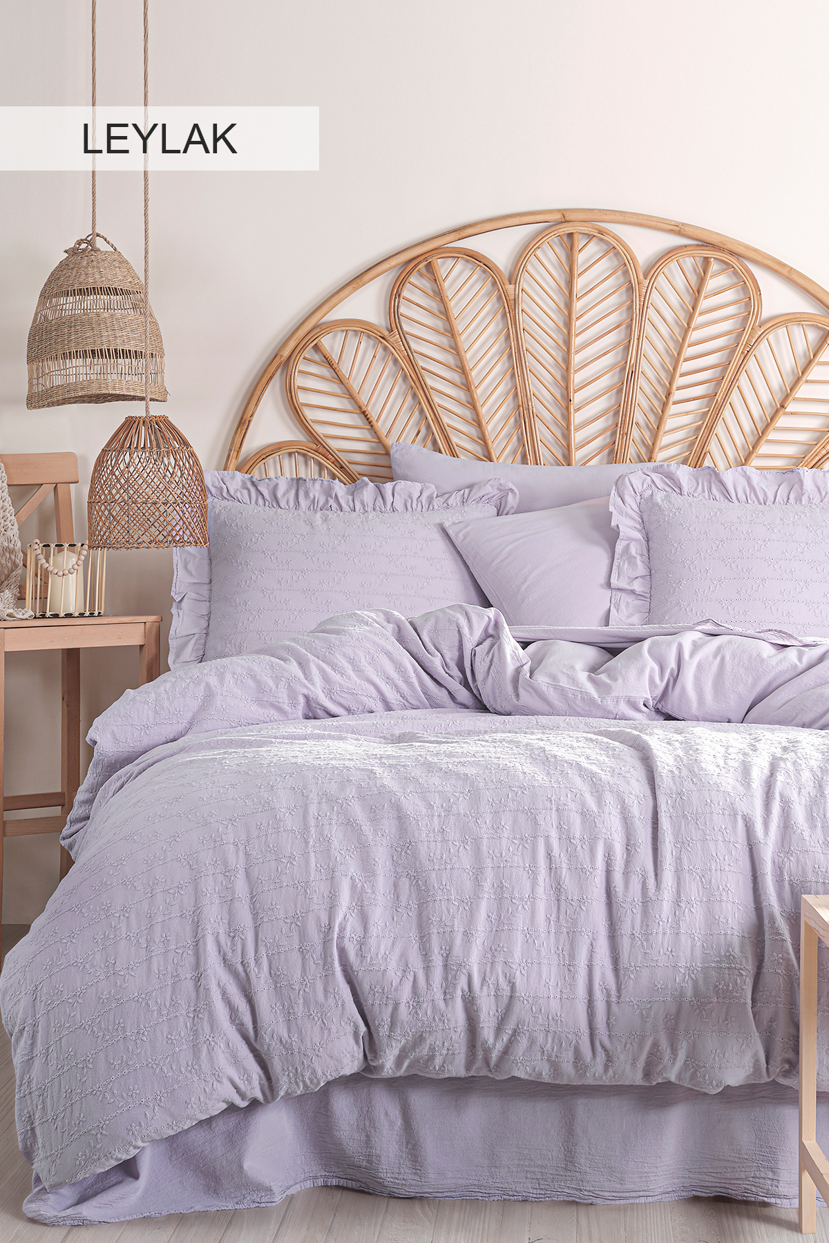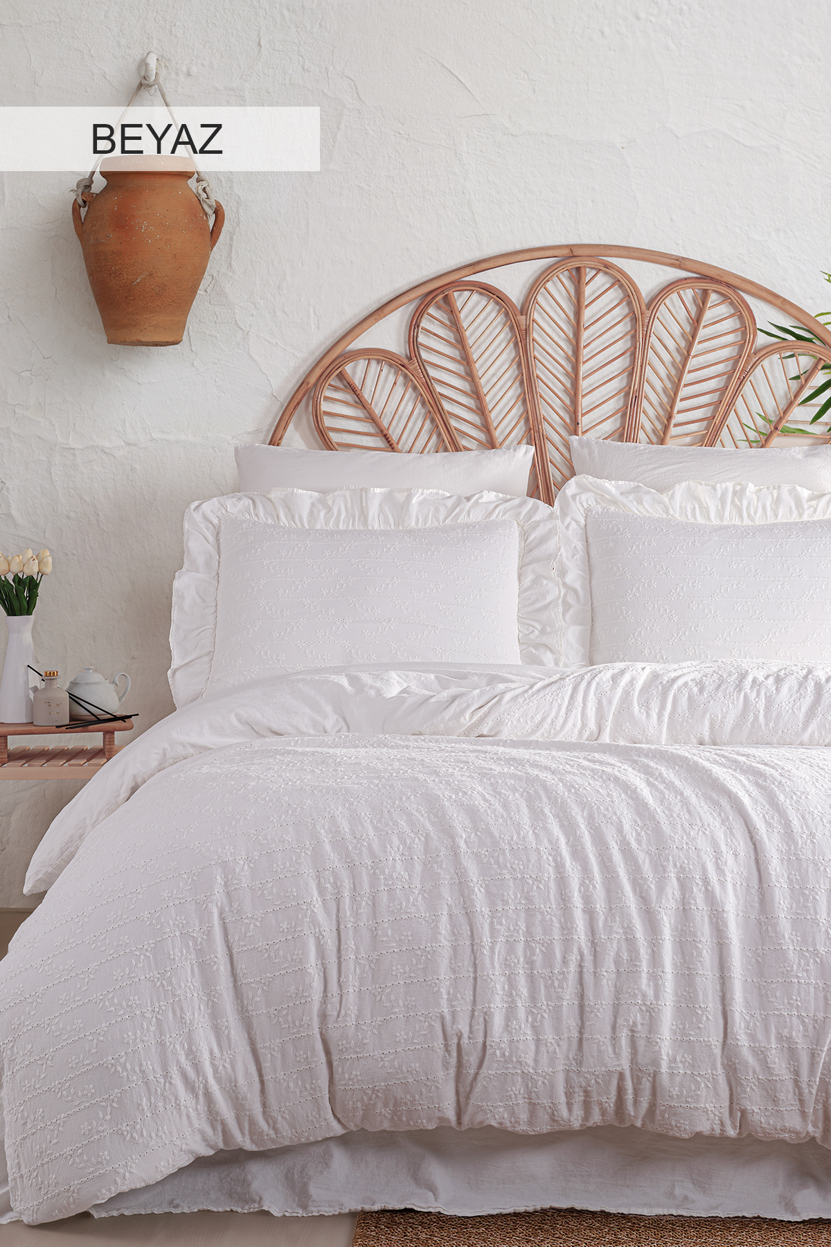 Painted with a special technique, the “Recital Duvet Cover Set” dazzles with its elegant floral broderie patterns and draws attention with its simple and stylish design.