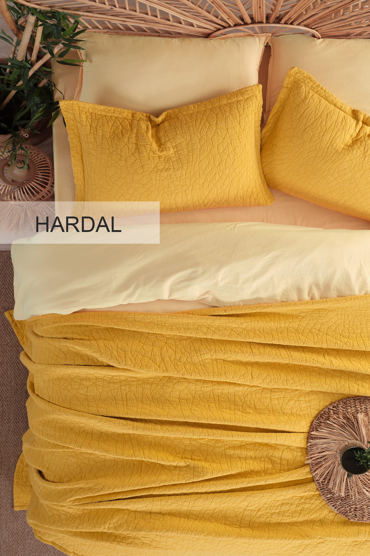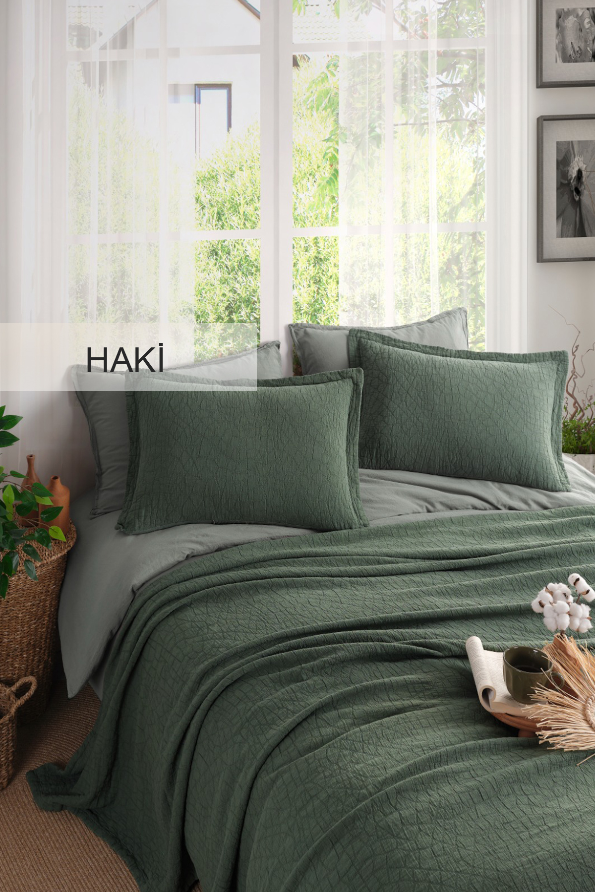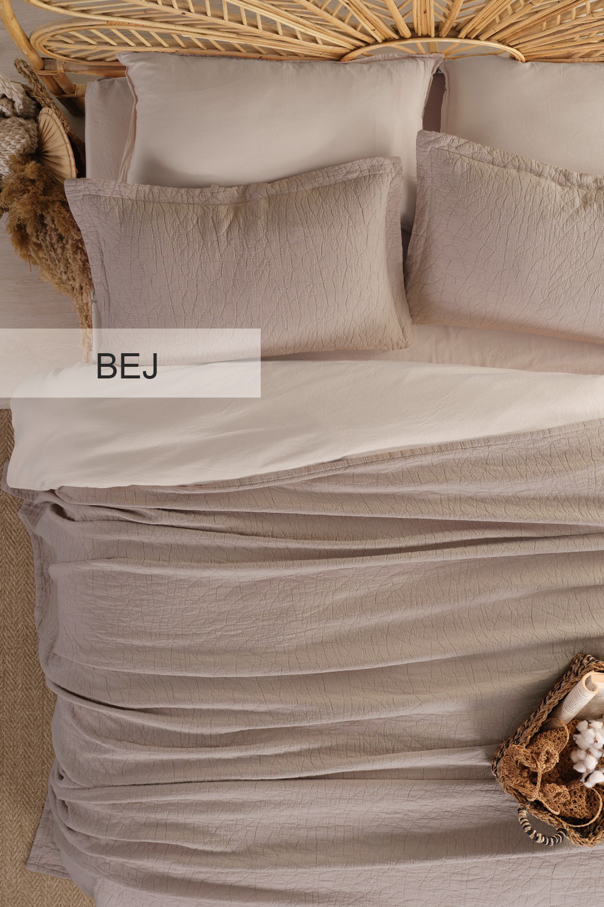 Stone motifs reflect the balance and harmony of nature. Each stone reminds us of the silence and calmness of the mountains. This set turns your bedroom into a relaxing shelter. Produced from high quality materials and dyed with a special technique, this set brings softness and comfort together. Elegant fabrics that are felt with every touch offer you a warm embrace throughout the night.